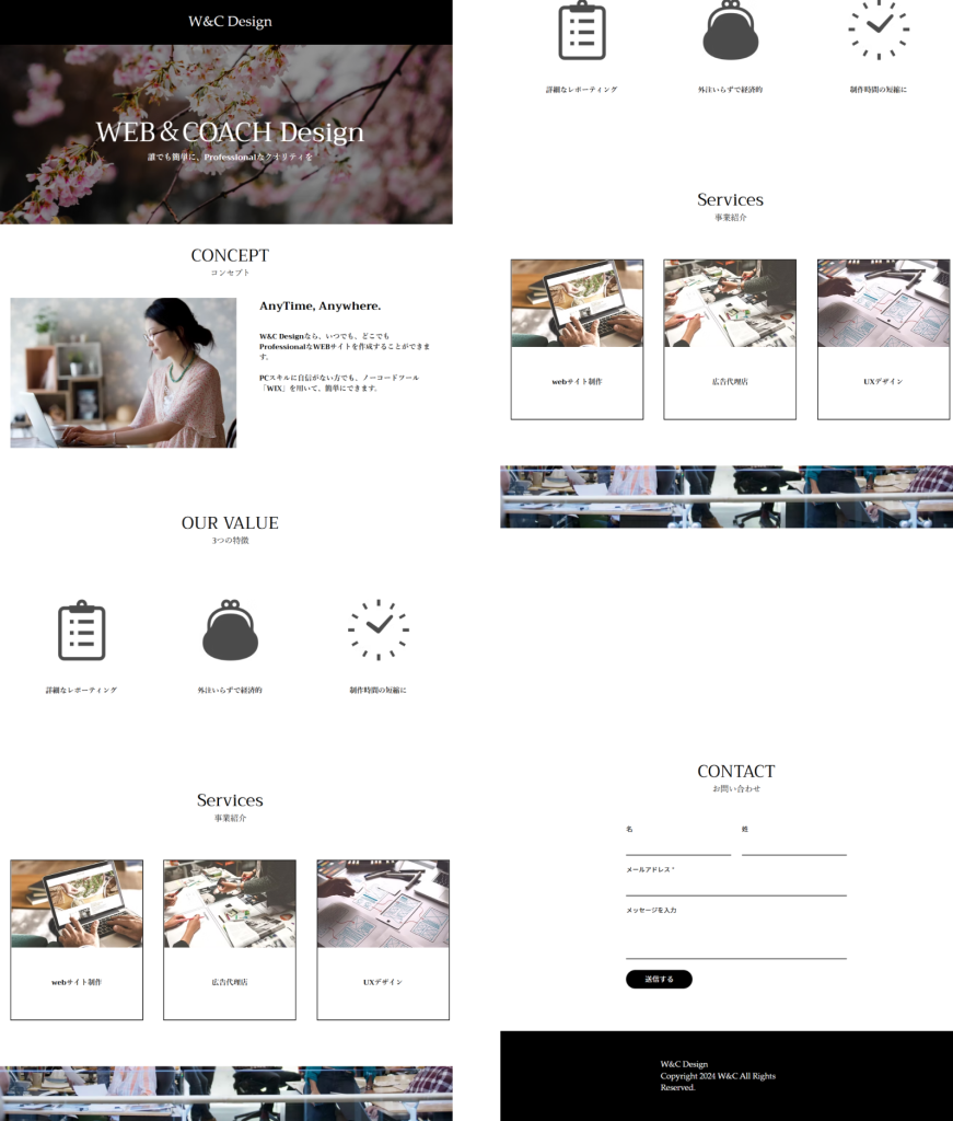 「WEB&COACH Design様」企業HPを作成しました。※スクール課題模写 架空HP